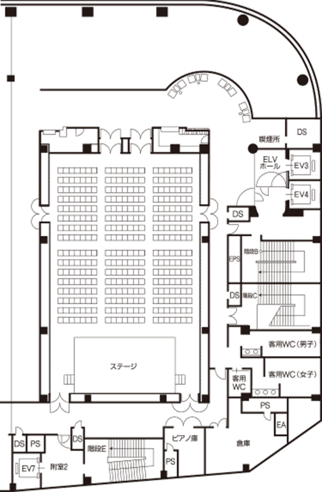 - ・収容人員:スクール / 約200人、シアター / 約350人