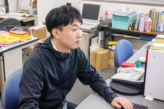 職場は落ち着いた雰囲気で、皆が集中して業務に取り組んでいます。基本的に個人で業務を遂行しますが、チームで行うプロジェクトもあります。その際には、コミュニケーションをとり、協力しながら目標達成に向けて進めていきます。